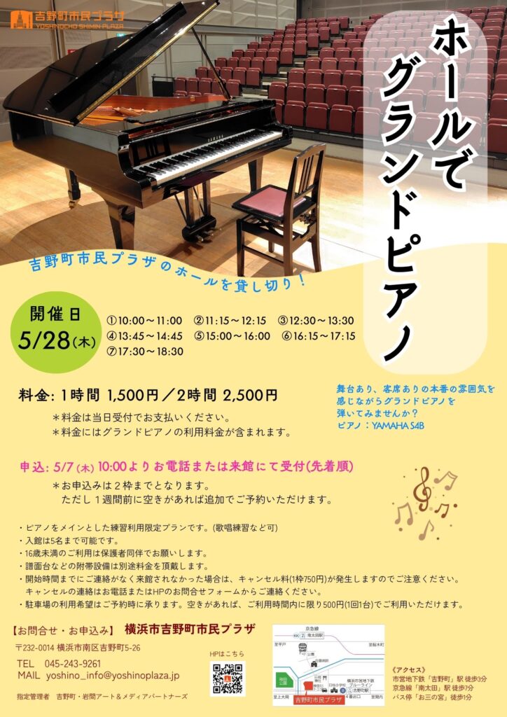 ~1時間1,000円でグランドピアノを弾いてみませんか?~...