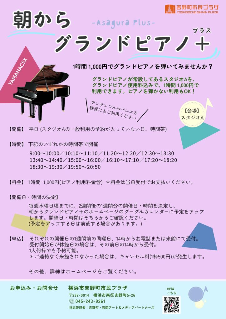 【お申込み・お問合せ】 横浜市吉野町市民プラザ (指定管理者 吉野町・岩間アート&メディアパートナーズ)