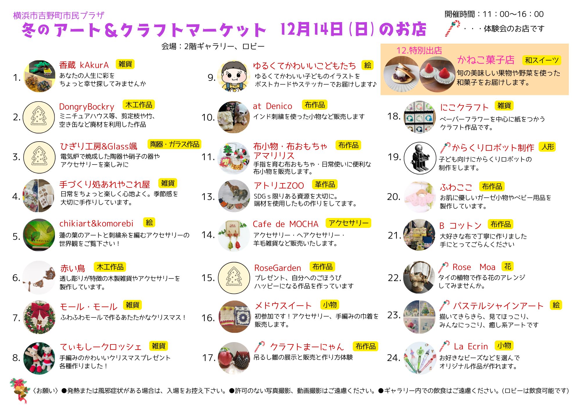 12月14日(日) 24ブース *特別出店 和スイーツ販売「かねこ菓子店」