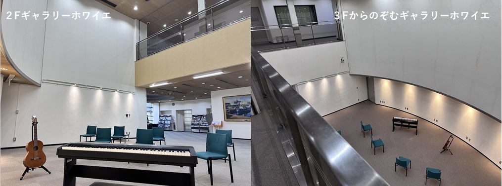 吉野町市民プラザの吹抜けのある2Fギャラリーホワイエを演奏場所として無料でお使いいただける新企画です。